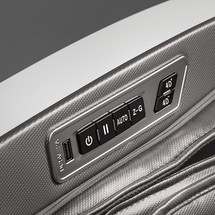 Сканирование - перед началом сеанса, кресло выявляет отличительные особенности пользователя и проблемные зоны., Прогревание - с помощью инфракрасного прогрева происходит расслабление мышечных тканей, за счёт чего массаж становится ещё более эффективен., Вытягивание позвоночника- это автоматическая программа, во время которой кресло складывается, массажные подушки бережно захватывают голеностоп, плечи и руки, кресло выполняет потягивающие движения, при этом совершая роликовый массаж вдоль позвоночника., Слайдер - благодаря данной функции устройство можно ставить практически вплотную к стене и не беспокоиться, что при начале массажа, спинка кресла упрётся в стенку., Невесомость (Zero-G) - кресло принимает положение, при котором ноги находятся выше уровня головы. При таком положении происходит максимальное расслабление и прорабатывание более глубоких тканей роликовым массажем., Регулировка под рост - с помощью этой функции кресло подойдёт людям с разным ростом., Музыка - подключение к креслу по Bluetoth для прослушивания Вашей любой музыки во время массажа., Запоминание программ - при ручной настройке массажных функций, их можно сохранить в компьютере кресла., Управление со смартфона - скачиваете приложение и управляете креслом прямо с телефона, Раскачивание - во время массажа, кресло совершает плавные покачивающие движения. |